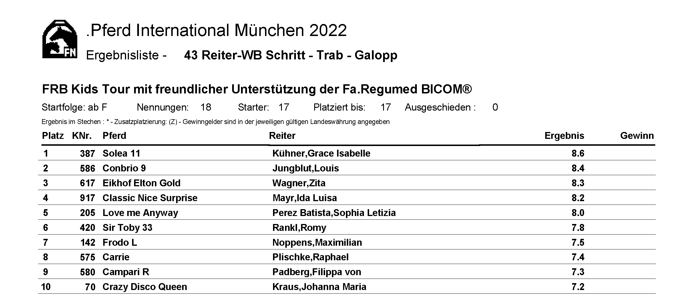 Mit der Wertnote 8,6 konnte diesen Grace Kühner für sich entscheiden, gefolgt von Louis Jungblut und Zita Wagner – herzlichen Glückwunsch!
